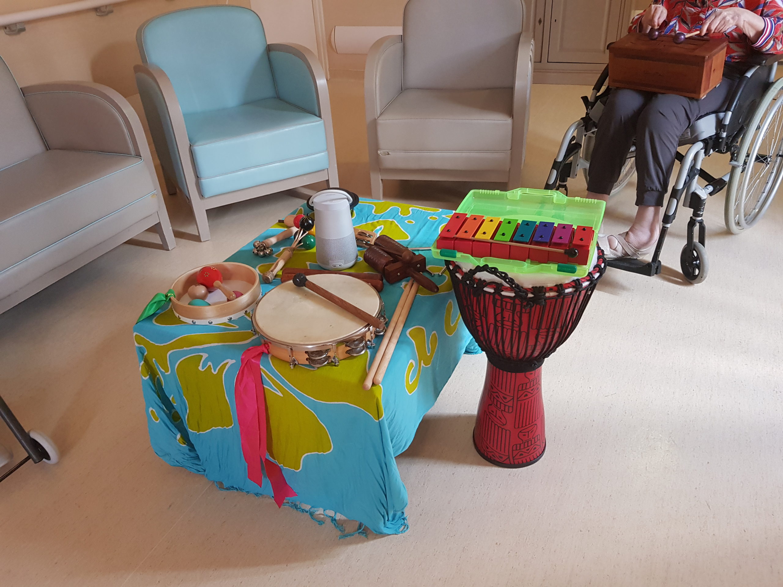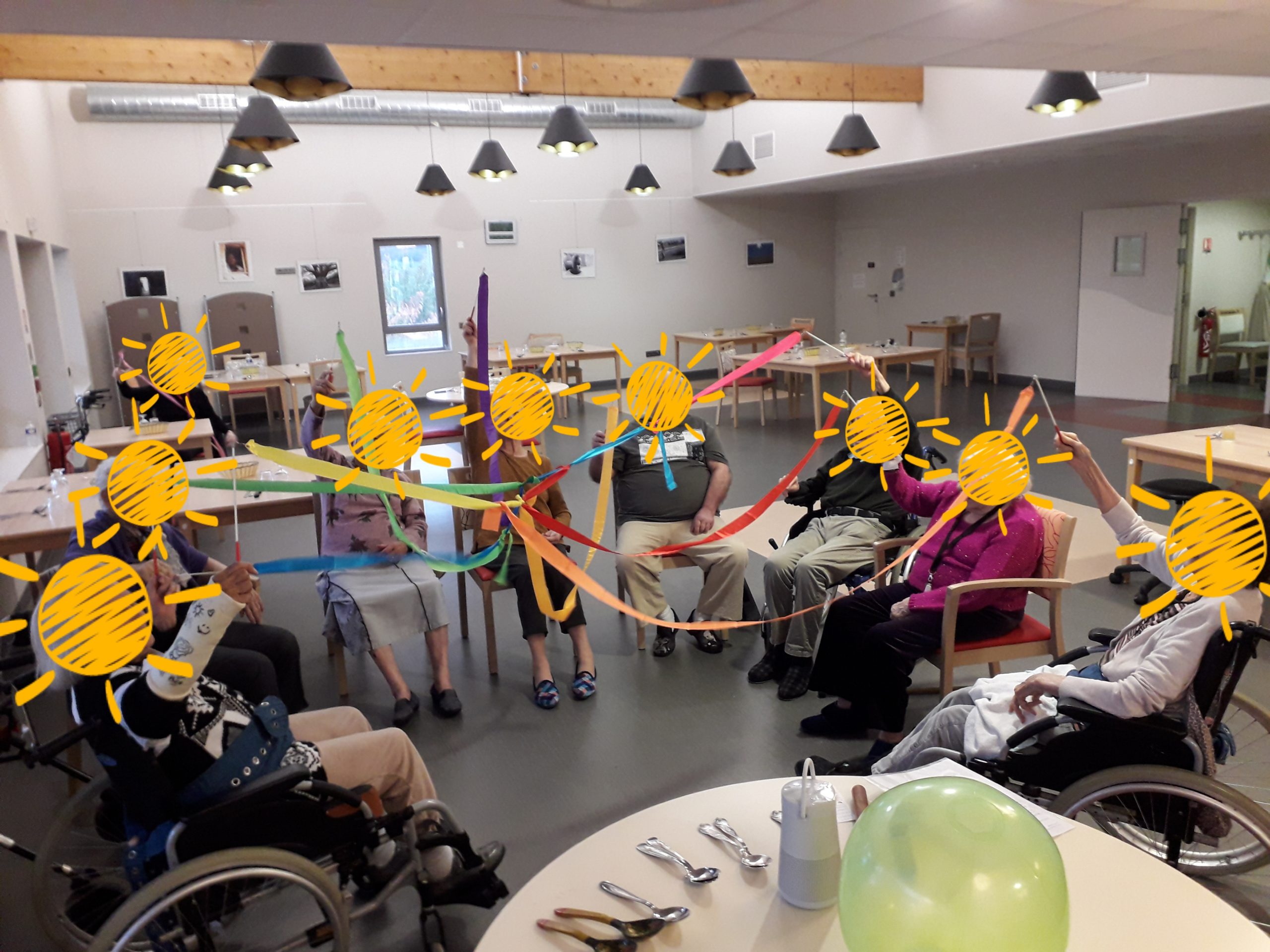 Dans les EHPAD, j’interviens autant en atelier collectif (groupe de 8 personnes) qu’en accompagnement individuel en chambre.