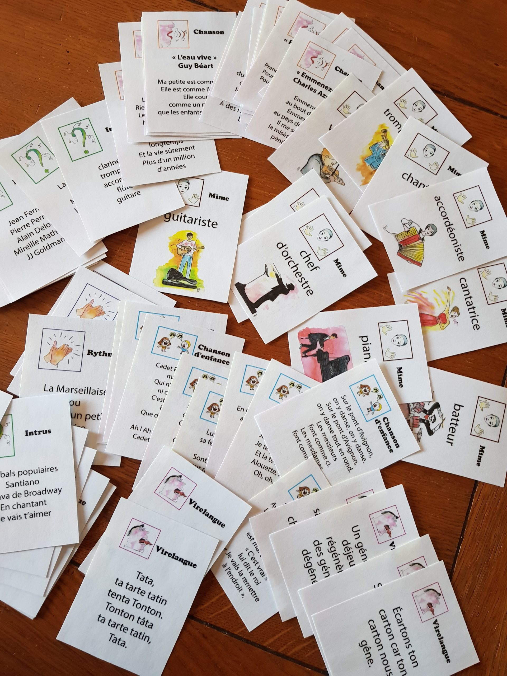 • J’ai créé un jeu « Les Musi’cartes » (en cours d’impression) pour stimuler cognitif, motricité,créativité, interaction.